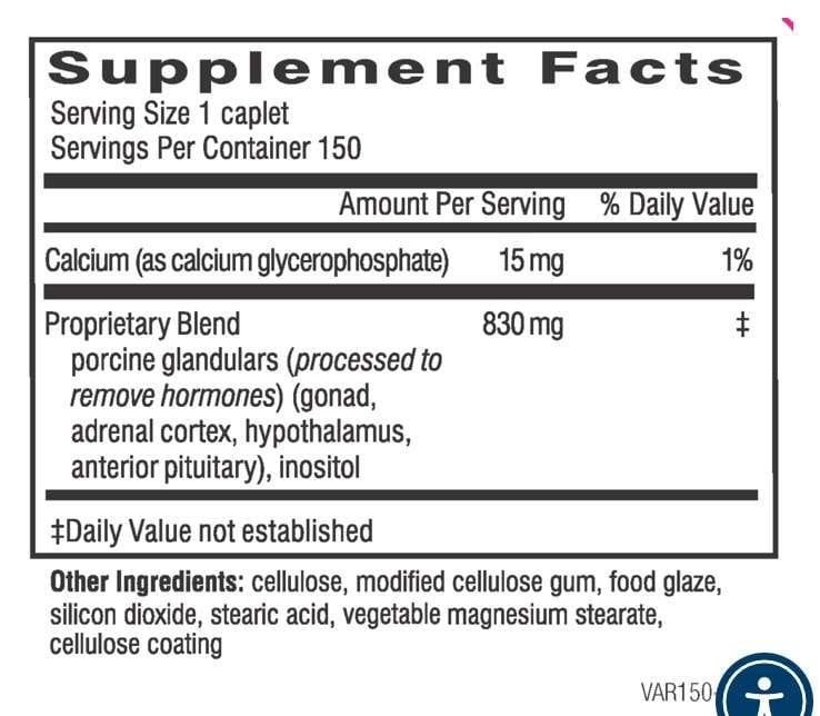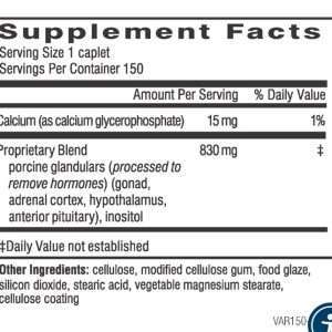 This unique dietary supplement is composed of carefully balanced amounts of dried extracts from the main glands involved in the stress response (adrenals, gonads, hypothalamus and pituitary). These porcine glandular concentrates are specially processed to remove the hormones and retain important natural building blocks made up of protein structures and other nutrients specific to each gland. Once ingested, these nutritional components become readily available to help structurally fortify and promote healthy, normal function in these same glands in your body.*