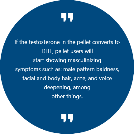 Pellets! To Do or Not To Do? I think the first thing we need to understand is what they are and what they do. Pellets are small implantable fused hormones that are typically testosterone or estradiol, that are inserted underneath the skin of the hip with a local anesthesia. Usually pellets are reinserted, for women, every 3 months. Clinical studies were done on men to determine dosing and men are given dosing every 4-5 months. The dose for women was extrapolated from the dosage for men, and herein lies a problem: women tend to need more insertions (about every 3 months) and there is an unpredictable conversion to DHT (dihydrotestosterone) and/or estrogen-estradiol (E2) and estrone (E1). (Estrone is the breast cancer cell proliferator) Some women do fine with pellet implants, while others, if their pellet converts mostly to estrogen, will gain weight. If these women convert these pellet implants mainly to DHT, they will start showing masculinizing symptoms such as: male pattern baldness, facial and body hair, acne, and voice deepening, among other health issues. Once these issues develop, the damage has been done. Symptoms often materialize after the 3rd and 4th pellet insertion (about a year) but I get emails from women weekly who experience hair loss and male pattern baldness as soon as their first pellet implant. Another concern for pellet users is that these pellets often lead to extremely elevated levels of testosterone that is much higher than normal female physiology. We call this “supra-physiologic dosing” as opposed to “physiologic dosing”–exactly what each body needs.